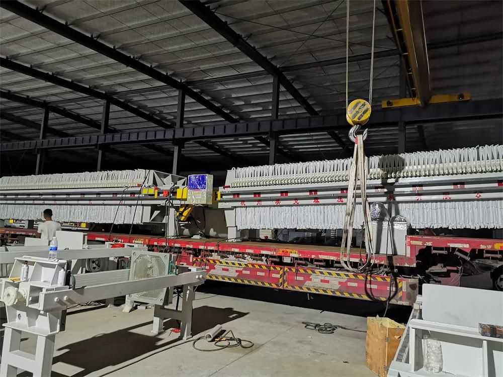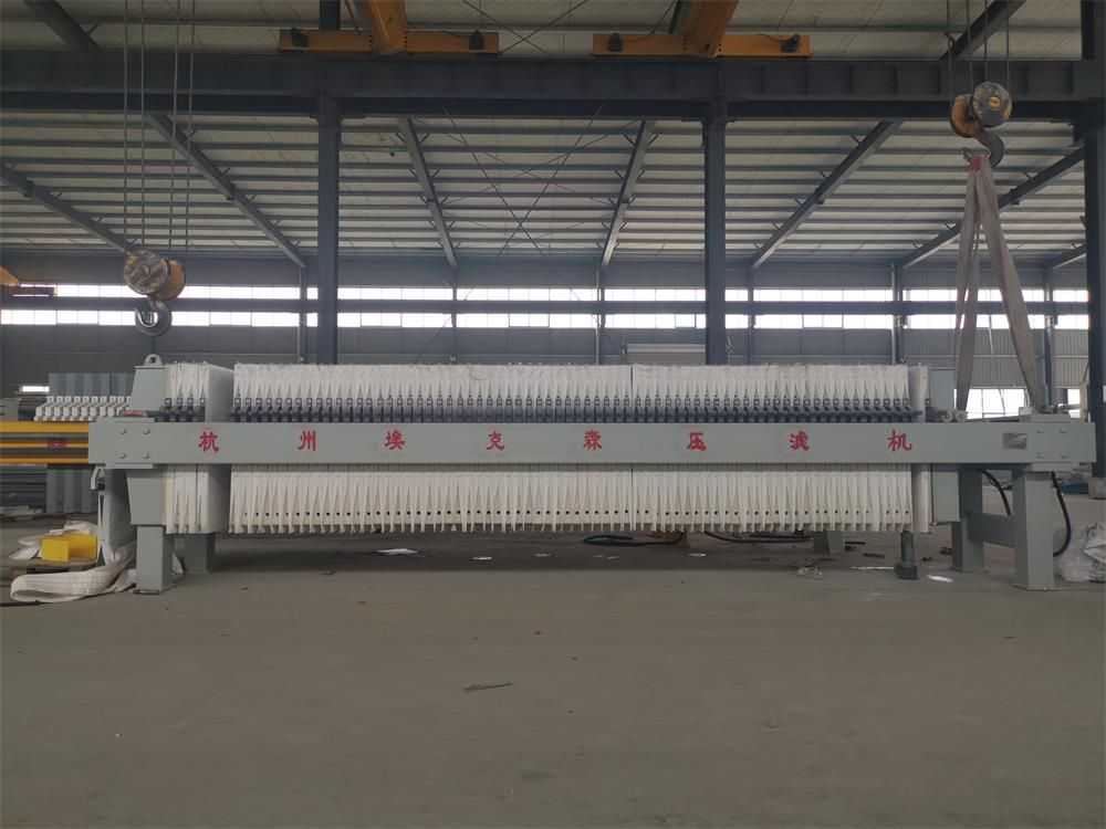 隔膜壓濾機和常規(guī)箱式壓濾機的主要區別在于,在濾板的兩側都增加了兩個彈性膜(復合橡膠膜是一個整體式膜。在操作期間,當進料完成時,將高壓流體介質注入膜中,并使整個膜膨脹以過濾濾餅,以進一步使濾餅脫水,這是壓力過濾。在隔膜壓濾機運行期間,液壓系統使用液壓油作為壓力載體來傳遞內部壓力。
